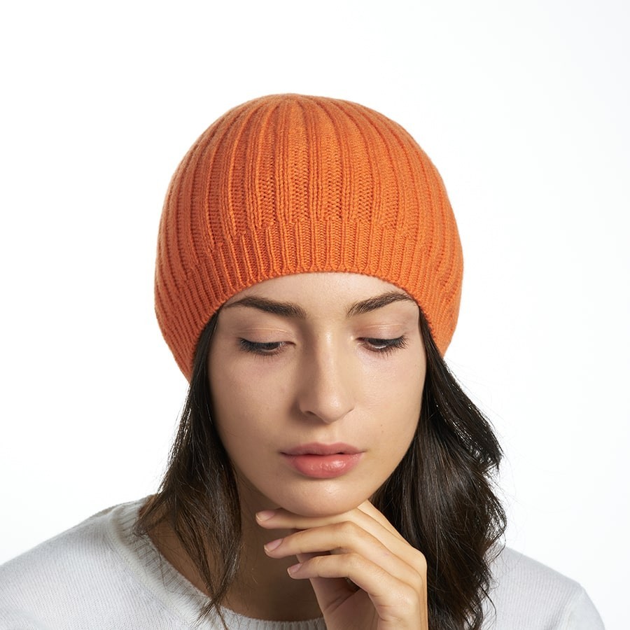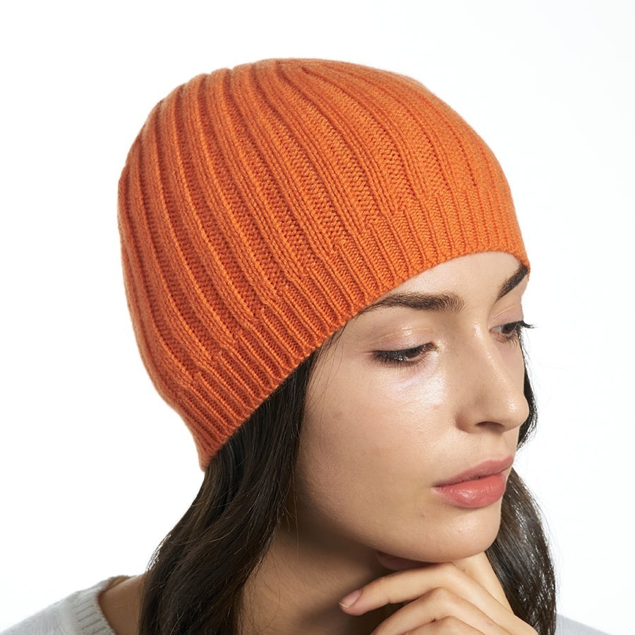 Very soft Cariaggi cashmere hat, with ribs throughout. Not to be tourned up. Made in Italy.