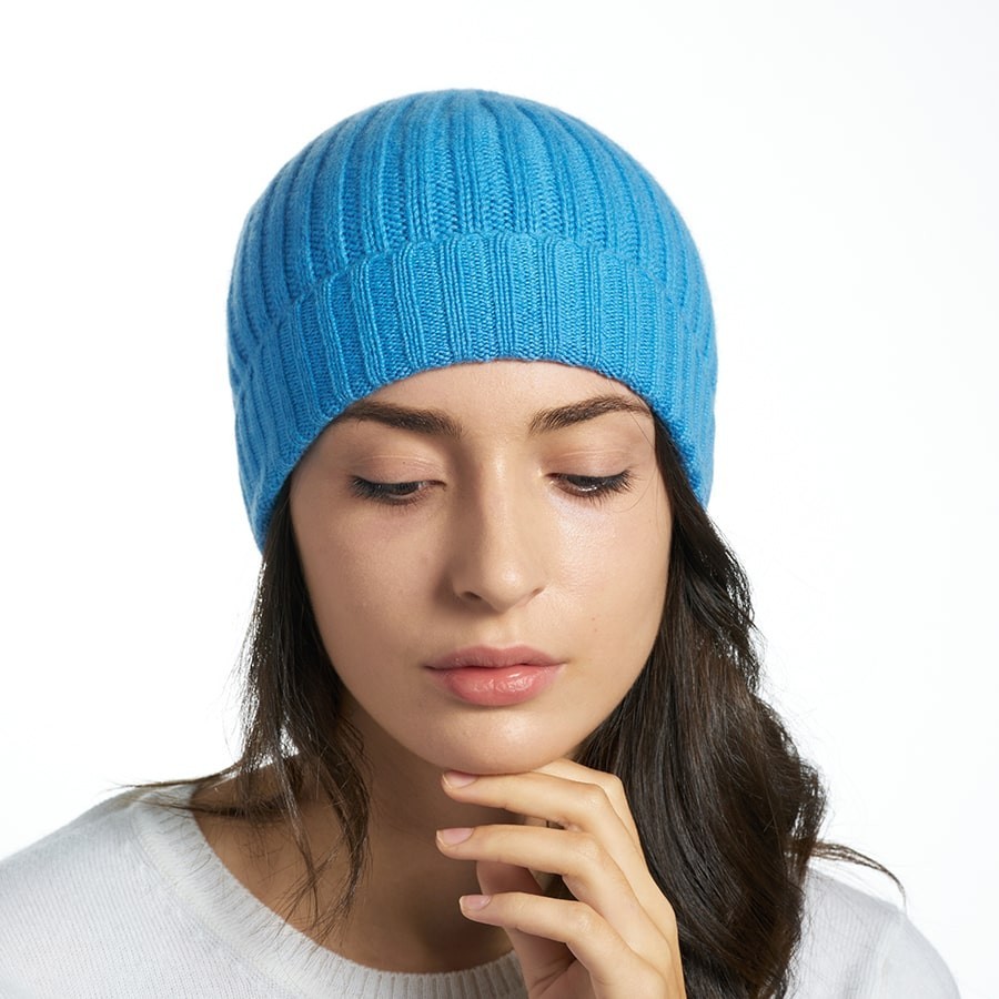 Ribbed knitted hat made with soft Cariaggi cashmere. Made in Italy