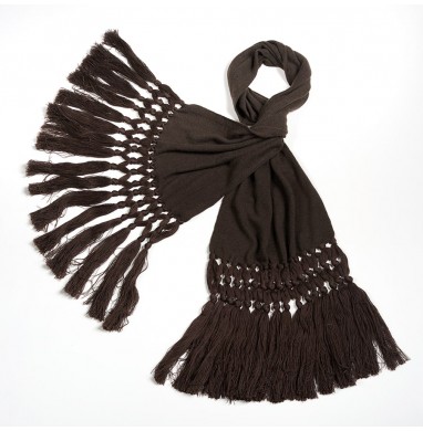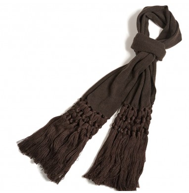 Knitted scarf made with 70% wool and 30% cashmere. The pure wool fringes are knotted by hand, in the same colour as the scarf.